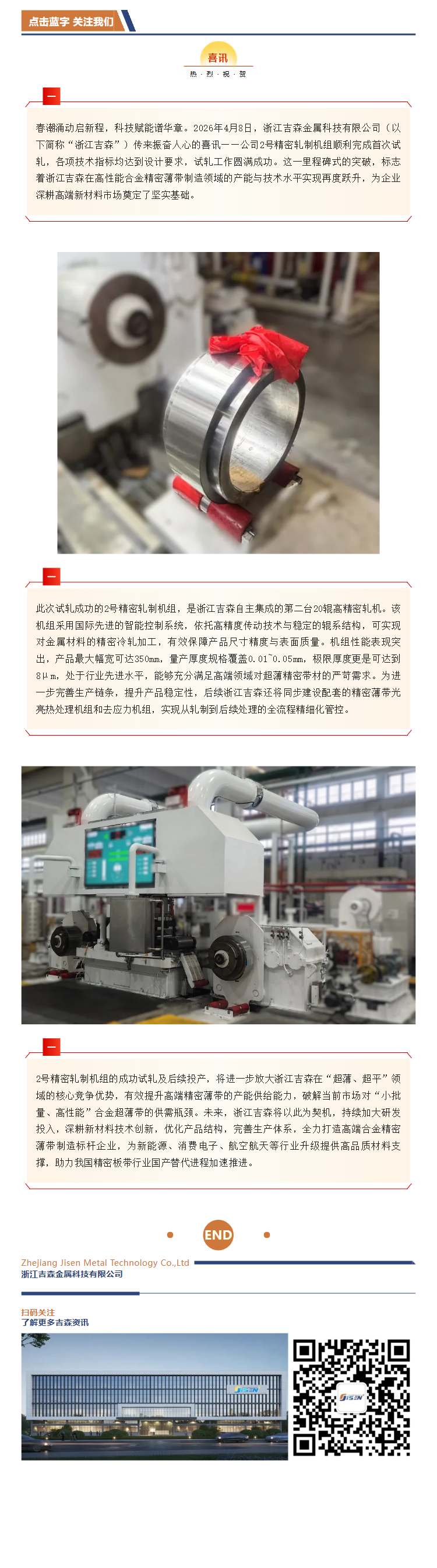 企业资讯丨喜讯!浙江吉森金属科技2号精密轧制机组首次试生产圆满成功